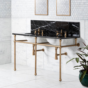 Complimenting its timeless brass frame, the Bloomsbury Vanity Suite is supplied with a stunning marble top, matching upstand and elegant porcelain basin to add to the products enduring allure and appeal.