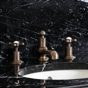 Complimenting its timeless brass frame, the Coleridge Vanity Suite is supplied with a stunning marble top, matching upstand and elegant porcelain basin to add to the products enduring allure and appeal.