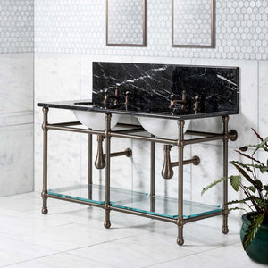 With its embellished appearance and elegant brass frame, the Coleridge Double Vanity Suite from Rutland London epitomises the quality and style upon which Rutland London prides itself.