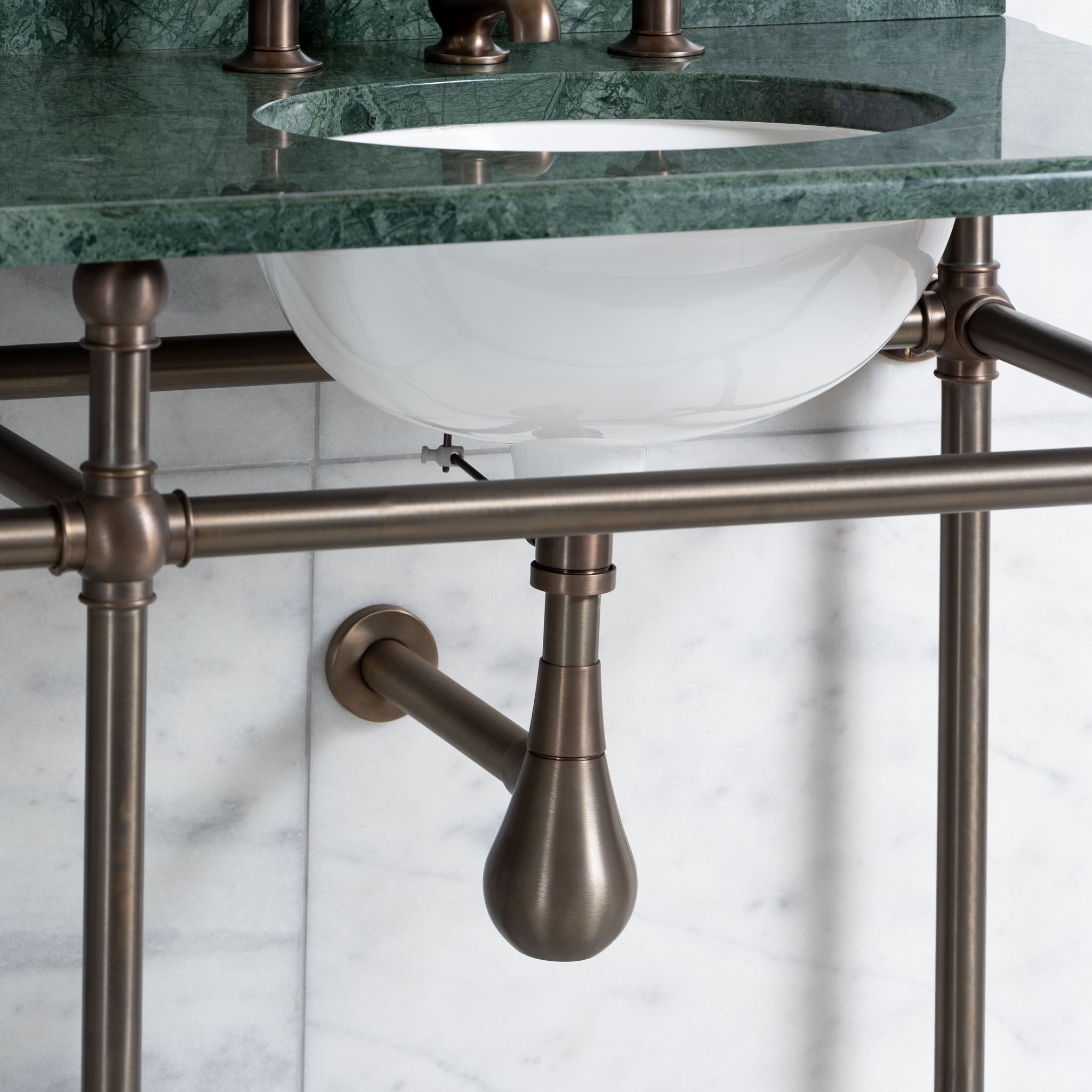 Marble loses its shine with wear and is a soft material that easily scratches and can be stained due to its relatively high porosity. To ensure the longevity of our marble, Rutland London recommends the regular application of sealant to all marble surfaces.