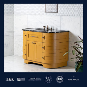 Painted vanity suites manufactured by Rutland Londonfeature a matt finish applied via a durable aerospace paint coating. Rutland London is able to cater for bespoke requests such as gloss or satin finishes or near matching the colours of popular paint brands including Farrow & Ball, Little Greene & Paint & Paper Library.