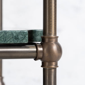 The quality of materials and craftsmanship found within the handmade Nevern washstand is synonymous with Rutland London. Handmade to order in our family-owned Hampshire factory, the luxury Nevern Vanity Suite is manufactured from 32mm diameter DZR brass tube, timeless embellished Italian ball joints and elegant 83mm diameter brass wall plates.
